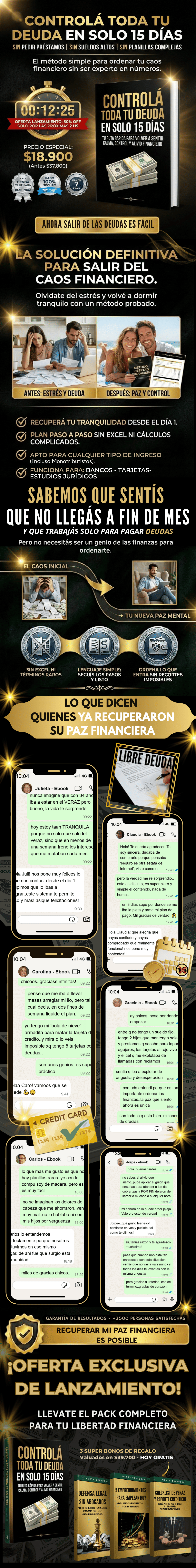 EL ALIVIO MENTAL ES INMEDIATO. El sistema está diseñado para que en los primeros 3 días ya tengas tu diagnóstico claro y baje tu ansiedad. En 15 días vas a tener las negociaciones iniciadas o cerradas y el control total de tu situación. La limpieza final de antecedentes demora los tiempos legales de los organismos (30-90 días), pero tu tranquilidad empieza hoy.